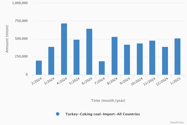 Secondo i dati forniti dall’Istituto di statistica turco (TUIK), a gennaio di quest’anno le importazioni di carbone da coke in Turchia sono diminuite del 22,3% su base annua e del 30,5% su base mensile, attestandosi a 511.823 tonnellate. Il valore delle importazioni si è attestato a 100,72 milioni di dollari, registrando un calo del 46,4% su base annua e un incremento del 40,9% su base mensile.