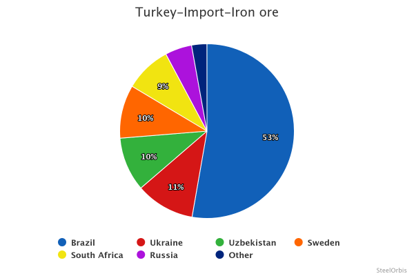 Origini delle importazioni minerale di ferro da parte della Turchia nel 2024: