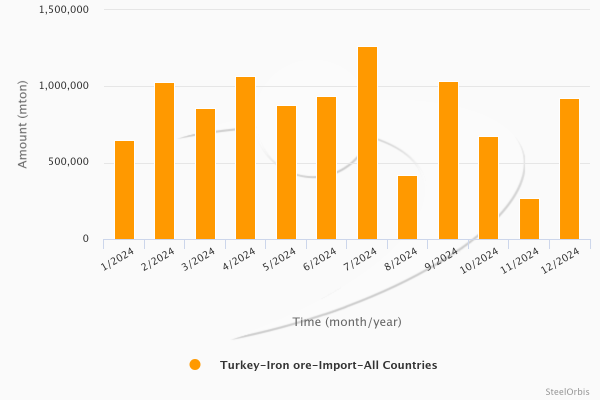 Secondo i dati preliminari forniti dall’Istituto di statistica turco (TUIK), a dicembre dello scorso anno le importazioni di minerale di ferro in Turchia sono ammontate a 924.539 tonnellate, registrando un aumento del 245,1% rispetto a novembre e un calo dello 0,1% su base annua. Le stesse importazioni hanno generato valore per 81,74 milioni di dollari, in aumento del 160,3% rispetto al mese precedente e in calo del 33,1% rispetto all’anno precedente.