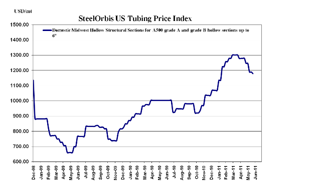 I prezzi locali dei coils laminati a caldo (HRC) sono tuttora il fattore che maggiormente influenza i movimenti delle quotazioni dei tubolari, in quanto la scarsa richiesta di questi prodotti non ne supporta i prezzi. Nel Midwest, i prezzi spot degli HRC, stabili nell'ultimo mese, la scorsa settimana hanno iniziato a mostrare segni di cedimento. I prezzi spot dei tubolari strutturali sono già scesi di 11 $/ton sul termine maggiore del range nelle ultime due settimane, collocandosi a 1.168-1.190 $/ton franco produttore Midwest.